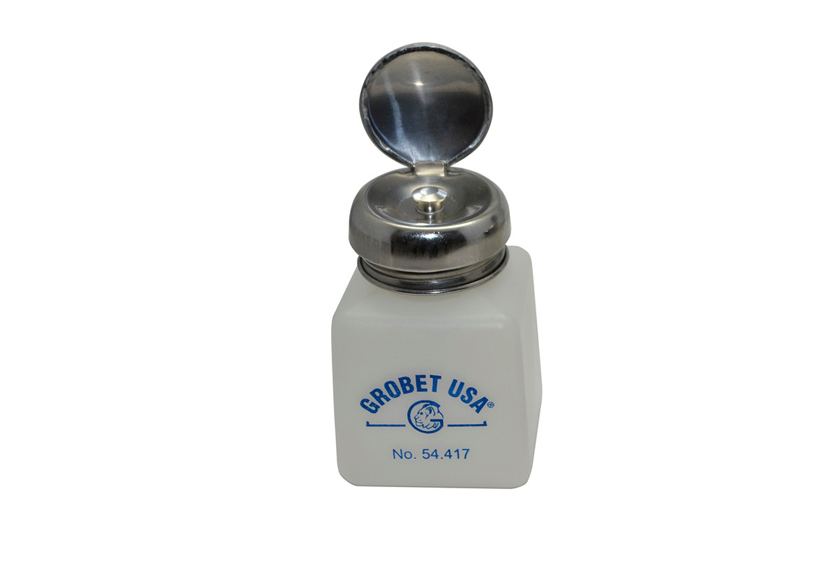 The Pump-Acton Lid dispenses just the right amount of flux or other liquid. Pump the lid gently and the fluid is dispensed into the well. The one-way pump holds the fluid in the well of the cap, preventing contamination of the unused fluid. For best results and to avoid clogging, the wells should be emptied and the caps cleaned after use.