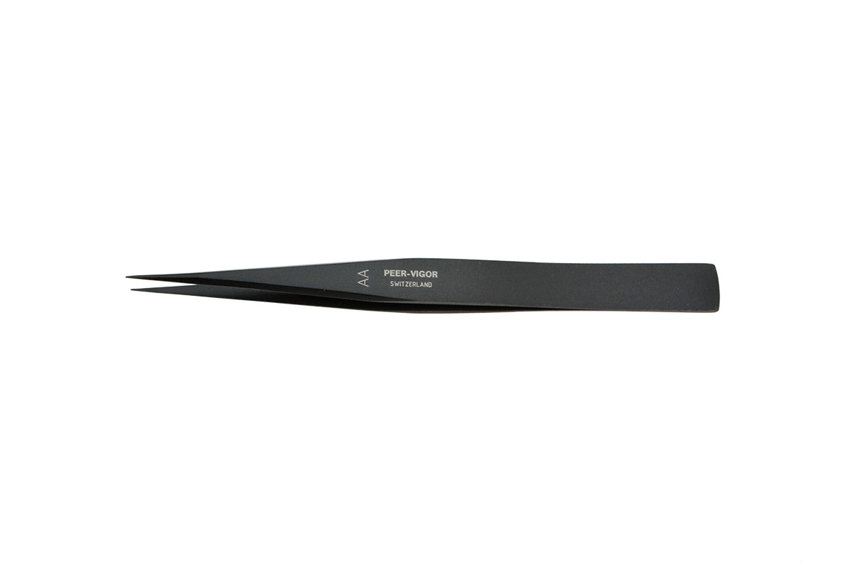 This tweezer has a non-glare black oxidized finish. Solder will not adhere to this finish. Boley style tweezers are excellent general utility tweezers. All shanks are tapered and have beveled edges, except the GG pattern. For assembly, inspection, sorting, soldering, etc. of small parts.