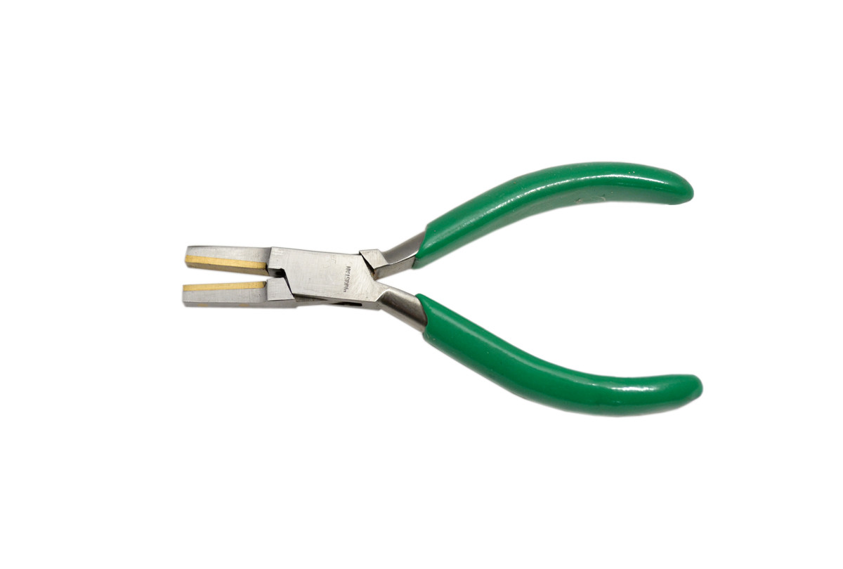 Lightweight stainless steel work pliers have smooth jaws and are completely rust proof. Polished heads prevent marking soft metals. Cushion grip handles. Overall length is 5″. Flat nose with brass lined jaws.