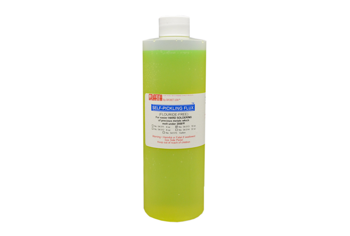 A liquid hard soldering flux for metals which melt under 2000°F (1093°C).