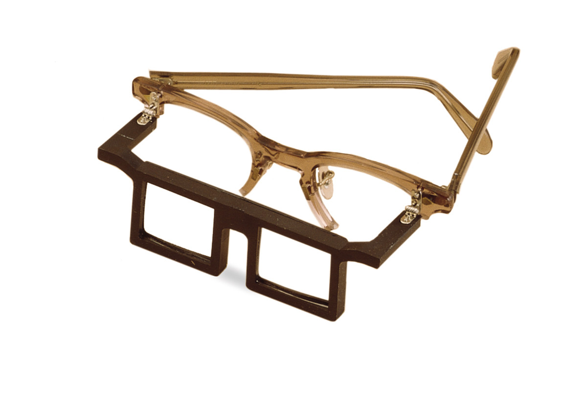 For those who do not wear glasses. High quality prismatic lenses in lightweight frames attached to half-eyeglass frames. Front lenses flip up when not in use. Working distance is 14″. Power 1 3/4X.