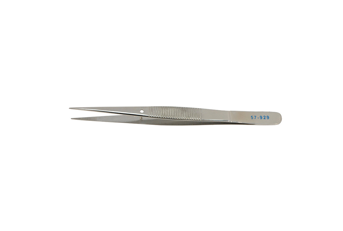 With straight shaft. Overall length 4-1/2 inches (114 mm). Points are sharp and serrated. Comes with guide pin.