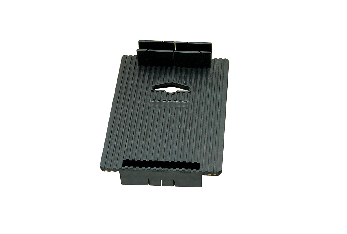 An ingenious device that offers the user portability and versatility! This double miter has an extra small miter on one side and a small miter on the other. You flip it over and the miter catches on the lip of the bench or table, securing it for work. Outstanding for precision cutting of rail, balsa, tubing or rod. This is great for model railroaders, ship builders, model aircraft enthusiasts and slot car racers.