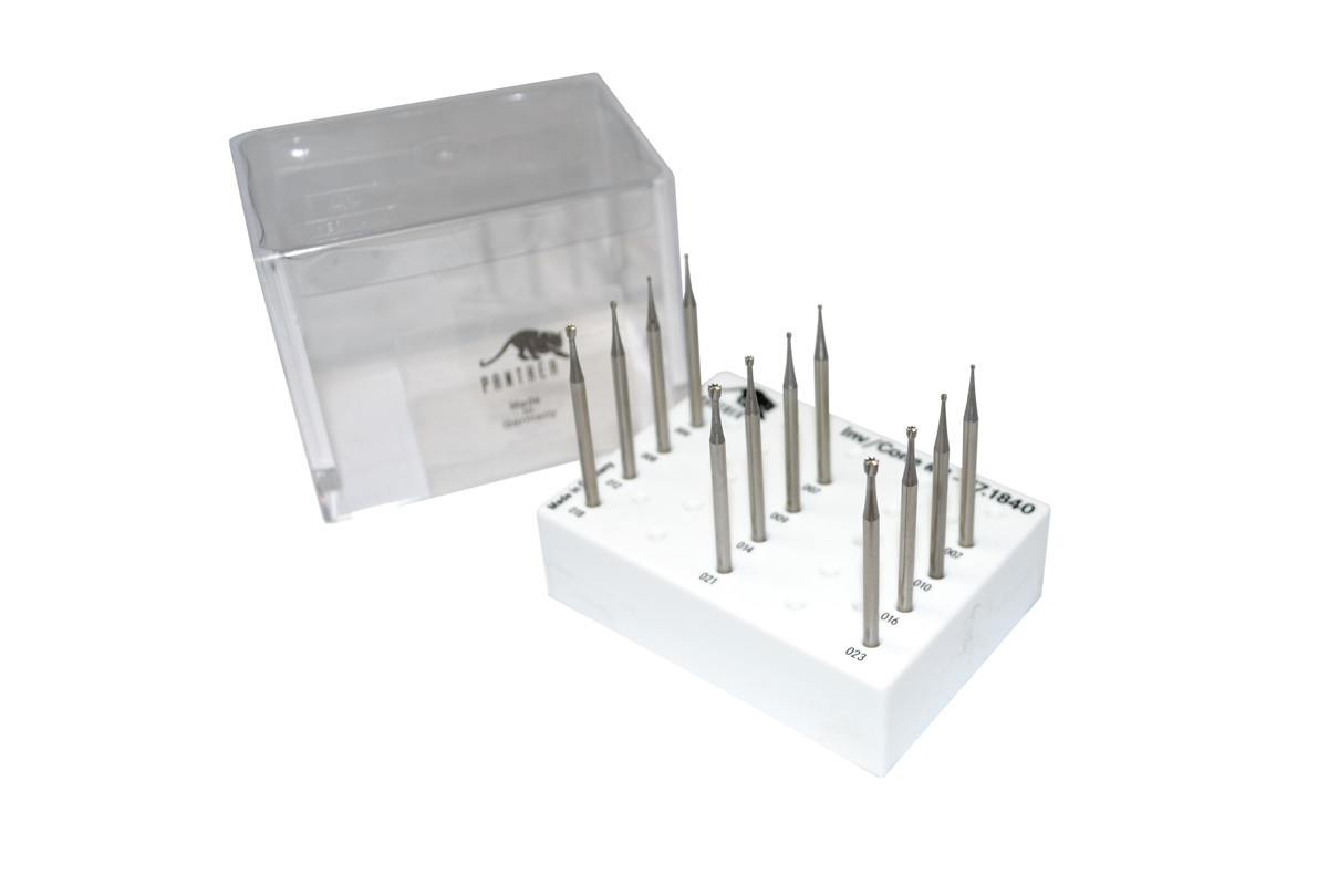 Set of 12 burs, sizes 006, 2 burs – 007, 008, 009, 010, 012, 014, 016, 018, 021 and 023. 3/32″ shank.