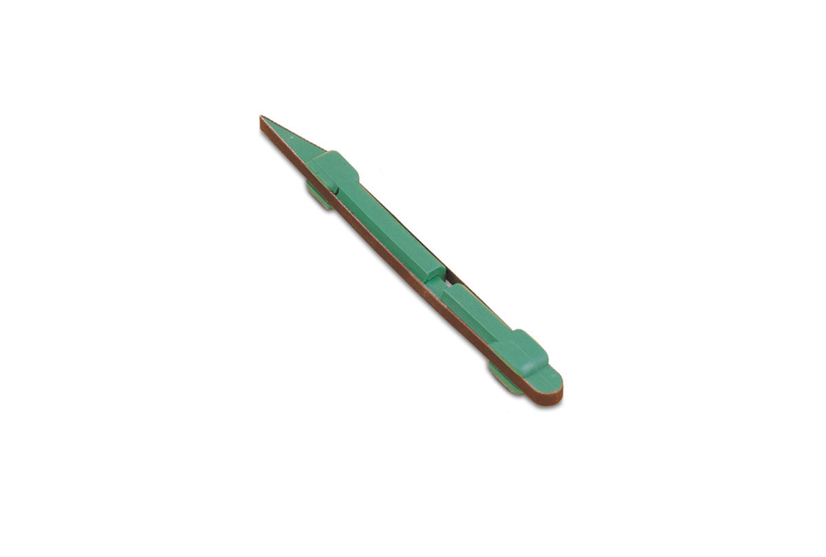 Fast, easy, economical way to reach detailed, hard-to-reach areas. Plastic stick, tapered at the end, holds a replaceable 1/4″ wide sanding belt. The aluminum oxide belt is held in place by a patented spring-loaded mechanism that allows the belt to be rotated 360°. Rotating the belt exposes a new sanding surface and allows the entire belt to be used.