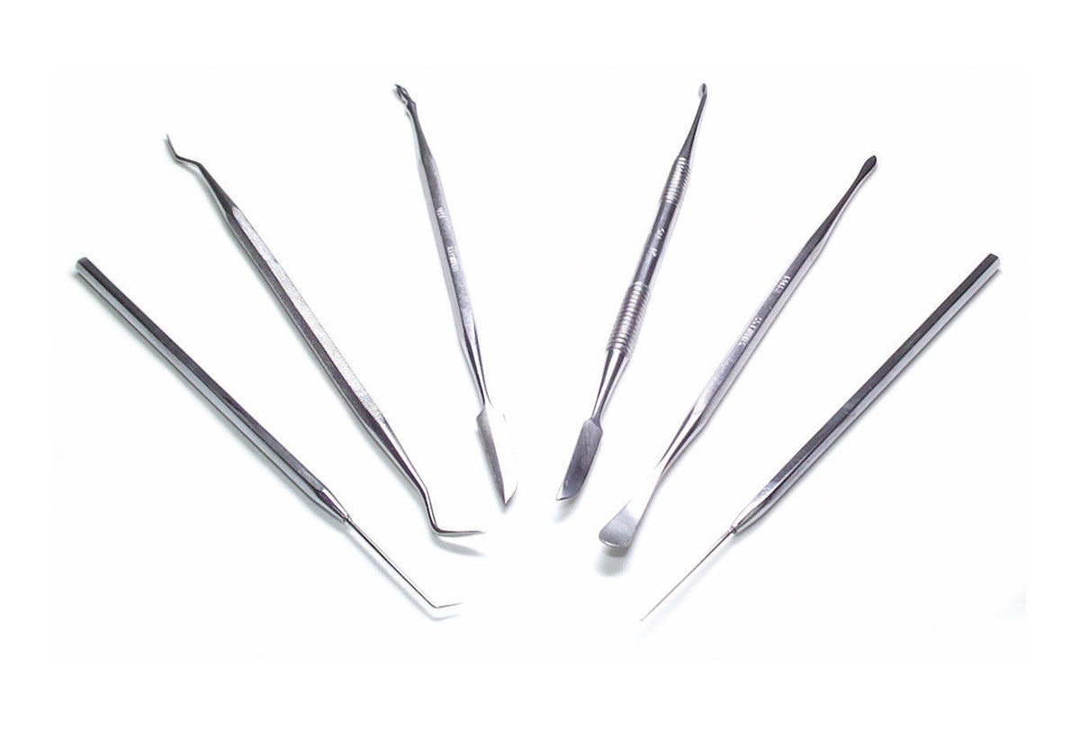 Set of 6 popular carvers, spatulas and probes. Consists of Nos. 21.114, 21.115, 21.116, 21.141, 21.251 and 21.252.