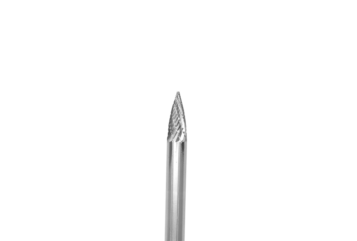 High quality carbide burs, manufactured by Grobet in the USA. Double Cut (ADC) is basically a standard cut tool, with cuts made on the left hand spiral. The design produces a finer finish on material and reduces the size of the chips and slivers. It gives greater tool control.