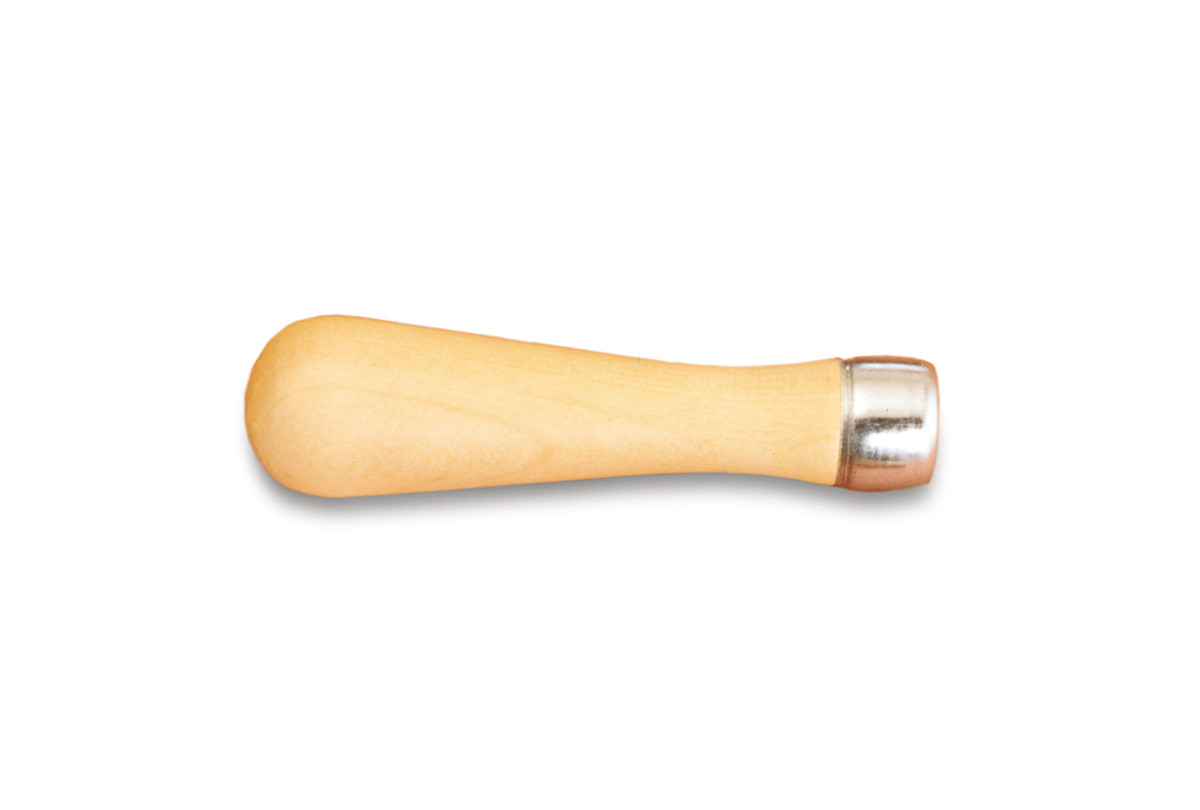 Steel die inside wood handle cuts its own thread on file tang. For 6″ files only.