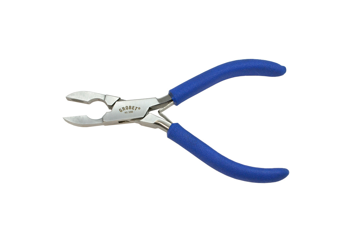 • Grooved cutouts on the top and bottom jaws provide a firm grip on stones and beads