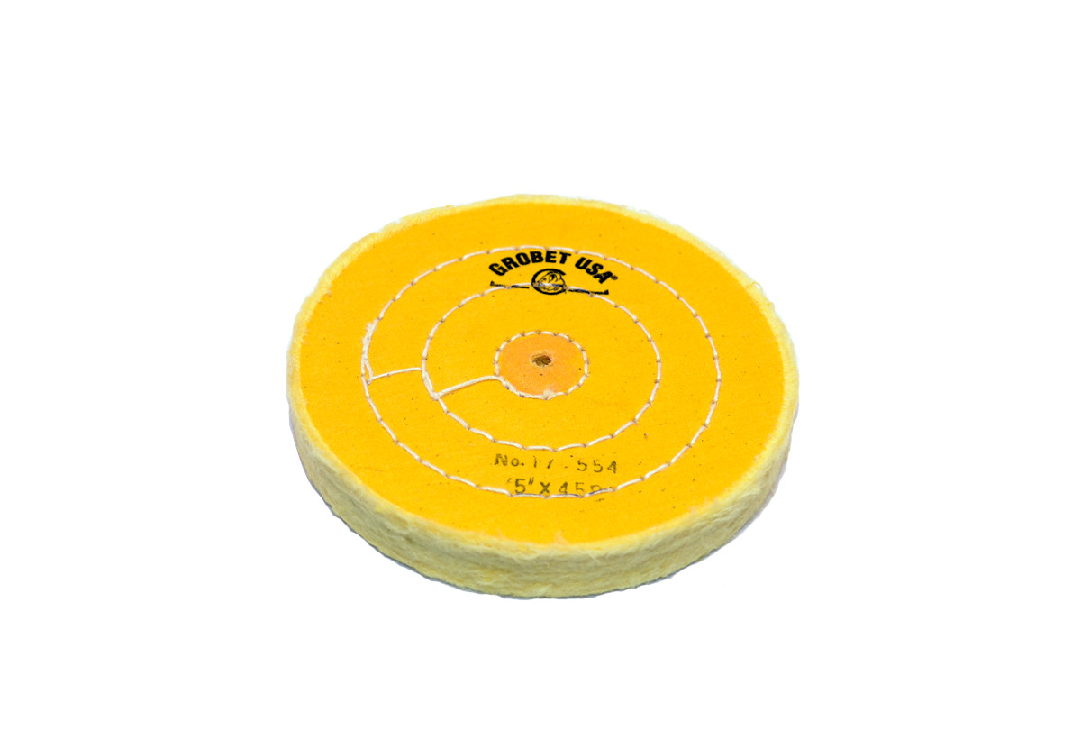Chemkote muslin buffs with shellac centers are more aggressive. The treated muslin helps remove surface scratches from work. Excellent for use with tripoli and abrasive compounds.